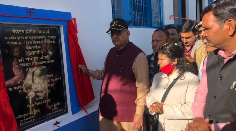 अमर शहीद कैप्टन प्रतीक आचार्य राजकीय इंटर कॉलेज डोभालवाला में विद्यालय भवन का लोकार्पण करते क़ाबीना मंत्री गणेश जोशी।*