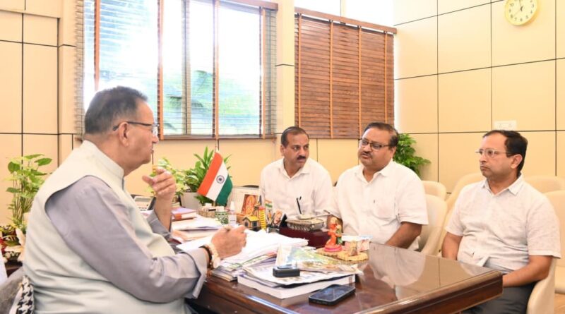 मसूरी विधानसभा क्षेत्र के अंतर्गत आपदा से हुए नुकसान के संबंध में सिंचाई विभाग के अधिकारियों के साथ बैठक करते कैबिनेट मंत्री गणेश जोशी