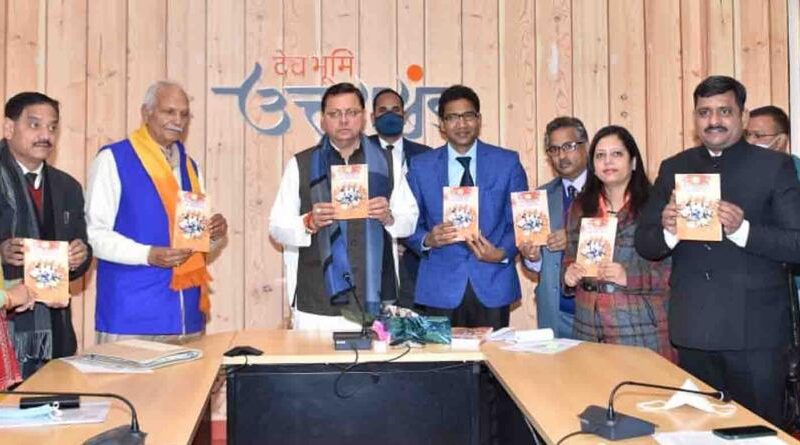 मुख्यमंत्री पुष्कर सिंह धामी ने मुख्यमंत्री आवास में डॉ. संतोष कुमार द्वारा लिखित पुस्तक कोरोना से बचावः एक सजग पहल का विमोचन किया