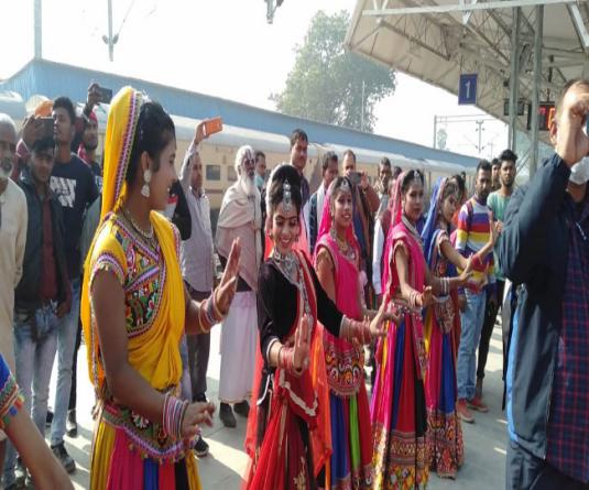 दिल्ली सरकार की तीर्थ यात्रा ट्रेन रामनगरी के अयोध्या जंक्शन पहुंची, गाजे बाजे के बीच यात्रियों का रेलवे की ओर से भव्य स्वागत किया