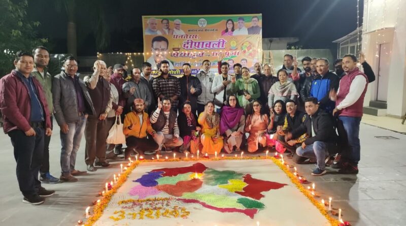 देहरादून 09 नवम्बर, प्रदेश के सैनिक कल्याण एवं औद्योगिक विकास मंत्री गणेश जोशी के कैम्प कार्यालय में धूम-धाम से मनाया गया राज्य स्थापना दिवस का जश्न। इस दौरान राज्य के आकार की रंगोली बनाई गई, भारत माता की रक्षा में शहीद हुए सैनिकों की याद में दीपक जलाए गए और मिठाइयां बांटी गई।