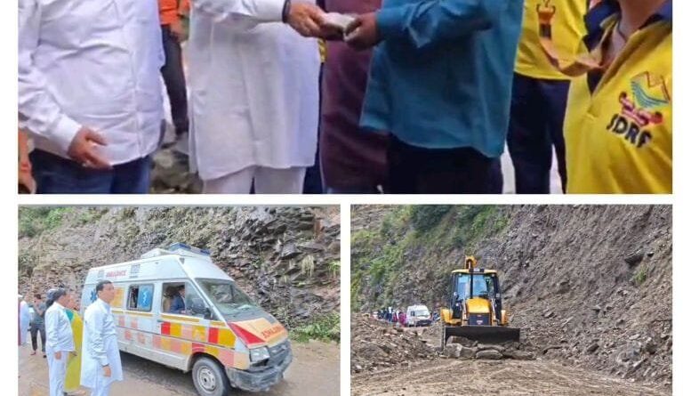 भूस्खलन में फंसी एंबुलेंस को बचाने के लिए सांसद बलूनी ने खुलवाया रास्ता, जेसीबी ड्राइवर को मोबाइल किया गिफ्ट