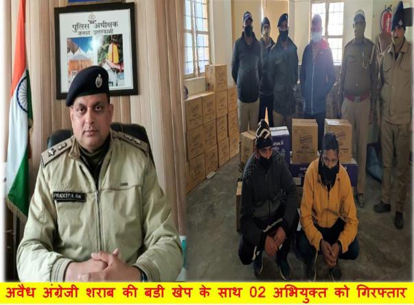 आगामी विधान सभा सामान्य निर्वाचन-2022 के दृष्टिगत प्रदेश भर मे आदर्श आचार संहिता लागू है, चुनाव के दौरान अवैध गतिविधियों की रोकथाम हेतु  पुलिस उपमहानिरीक्षक,गढवाल परिक्षेत्र द्वारा पुलिस को आवश्यक निर्देश निर्गत किये गये हैं। निष्पक्ष एवं शान्तिपूर्ण चुनाव हेतु *पुलिस अधीक्षक उत्तरकाशी, पी0के0 राय द्वारा जनपद उत्तरकाशी में चुनाव के दौरान अवैध गतिविधियों व मादक पदार्थों की अवैध तस्करी की रोकथाम हेतु सभी क्षेत्राधिकारी/कोतवाली/थाना/चौकी प्रभारी/ एस0ओ0जी0 तथा ए0डी0टी0एफ0 को लगातार सक्रिय रह कर कार्यवाही करने के निर्देश दिये हुये हैं।* जिस क्रम में गत रात्रि को प्रभारी एसओजी, अजय सिंह व उ0नि0 रोहित कुमार के नेतृत्व में एस0ओ0जी0 एवं धरासू पुलिस की संयुक्त टीम द्वारा चैकिंग के दौरान स्थान देवीसौड़ आर्कब्रिज के पास यात्री स्टैण्ड पर करीब साढ़े तीन बजे दो व्यक्तियों यतेन्द्र व यशपाल सिंह को वाहन संख्या- UK 09CA-0778  (पिकअप बुलेरो) से 148 पेटी अवैध अंग्रेजी शराब का परिवहन करते हुये गिरफ्तार किया गया। वाहन को पुलिस द्वारा मौके पर ही सीज कर दिया गया।